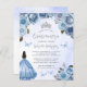 Budget Blue Silver Blommigt Quinceañera Inbjudan