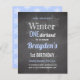 Den här "Winter Onederland"-pojkens första födelsedagsfest inbjudan har subtle grått snöflingor på en schalkboard bakgrund. Anpassa med din lilla pojkes detaljer om namn och party i blått och vitt. Baksidan har en vit snöflinga mönster på blå bakgrund.
