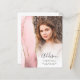 Det här trendiga examensmeddelandet för 2025 har en vattenfärgsektion med agatgränser i nyanser av rosafärgat med oäkta guldglitterhöjdpunkter. Den färdige studentens förnamn visas som en elegant, sotgrå handskriven text överlagd på ett vertikalt foto, tillsammans med efternamn, skola och avgångsår i koppartryckstil. Ett vitt övergångsfiltro gör att texten framträder. Ett andra, horisontellt foto visas på baksidan, tillsammans med tillkännagivandet och detaljer i sotgrå text på vit bakgrund.