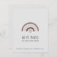 På en ömtålig grå bakgrund syns en rosa, taupe och brun handritad regnbåge som drar blickarna till dina viktiga nyheter... du har flyttat till en ny bostad. All text på framsidan och baksidan av detta eleganta, minimalistiska adresskort kan enkelt revideras på personaliseringsmallen.