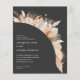 budget bohemisk naturlig, terrakotta pampas gräs stilfull bröllopsinbjudan. Vacker handtryckt floral och botanisk akvarell och script text. Modern trendig design. Mörk svart bakgrund