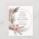 Budget Anpassa denna Boho rosafärgade, mauve, moderna och eleganta stilrena runda blomsterbotaniska akvarell-examensfirande på en vit bakgrund Inbjudan med ditt meddelande och detaljer. Denna chic inbjudan inkluderar rosor och modern pampasgräs med snygg och elegant skript typografi för den speciella gymnasie- eller högskoleutexaminerade.