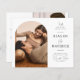 De här vackra svarta och vita bröllopsinbjudningarna har två av dina favoritbilder på förlovningen i ramar i den bohemiska bågen. Alla foton av paret kommer att fungera, det behöver inte vara en fotobild av officiellens förlovning, det kan vara ett speciellt ögonblick tillsammans, ett foto av "Jag gör!" eller en enkel kram. Minimalistiska och budgetmässiga bröllopsinbjudningar för modern boho bröllop. Typografin är en kombination av romantisk kalligrafi och klassiska serif-versaler. På den lämnat sidan finns det ett foto med en böjd snyggt ram överst. På kortets höger tar namn mittsteget, åtskilt med ett elegant-skriptampersand. Mellan namnen och resten av texten finns det smala raddelare för vågrät. Ovanför namn är inbjuden till ceremonin och under namn är de grundläggande detaljerna för ceremonin. Vi har valt att endast visning de grundläggande händelsedetaljerna på framsidan så att de kan användas som en keepsaké eller påminnelse om spara-datum. Vi tänka att dina gäster skulle behålla kärlek till det här kortet fastsatt i kylen eller fäst på en visning. Resten av händelseinformationen skrivs ut på baksidan, tillsammans med ett andra foto som du väljer. Det andra fotot är inuti en uppifrån och ned-båge som binder samman hela designen. Vi har tagit med malltext på baksidan som du kan anpassa efter dina behov till kostym - det finns gott om utrymme för att lägga till mer information, och på så sätt behöver du inte köpa ett andra kort för detaljerna! Bröllopbjudanden på dubblan med bilder. Vi har hållit hela texten svart mot en ren vit bakgrund för ett klassiskt svart-vitt typografiskt tema. Snabbredigering av inbjudningsmallar! Bakgrunden färg, typsnitt, placering, placering, färger och skrivning är anpassade! Om du vill anpassa klickar du på "Anpassa den här mallen" och ändrar texten i mallrutorna. Om du vill ha en mer avancerad anpassning kan du klicka på rullan för att anpassa dig ytterligare och använda Zazzles intuitiva design verktyg för att göra de här inbjudningskorten unika! Som en del av budgetvalet för Zazzle är lakan inte en vanlig storlek eller papper kvalitet för inbjudan. Om du vill ha den här designen på ett inbjudningskort kan du hitta den i vår butik eller använda på Zazzle Make Maskin för att överföra den till valfri produkt. Du kan gärna skicka anpassningsbar till mig med frågor eller beställningar - jag är lycklig för att hjälpa till!