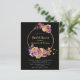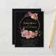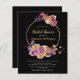Denna budget Black Inbjudningskort för möhippa - har bohemisk blommigt boho golden wand, pampas, frukt och gyllene droppar på svarta bakgrunder. Den omvända sidan av inbjudan är laktatsvart.