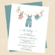 Söta babykläder hänger på en torklina på denna boho-inbjudan till baby shower. Funktionen stickade överalls, skor och en söt liten björn. Denna charmiga inbjudan har skrivstilstypografi med orden "oh baby" i en dämpad blå färg samt mammas namn i skrivstil. Se andra samordnade artiklar i vår butik. **VÄNLIGEN LÄS INNAN DU KÖPER** Budgetpappersvaror mäter 4,5 x 5,6 och passar i ett A6-kuvert. Det medföljer inga kuvert, men du kan lägga till vita kuvert till din beställning. Varje ark är en artikel - ingen skärning krävs. Standardpappret är ljust vitt med en halvblank finish och 110g vikt som är lämpligt för pappersvaror. Observera: om du väljer alternativet satinpapper är det ett tunnare 80g papper, som mer liknar tidningssidor än kartong. Använd Live Design Service om du behöver hjälp med din design efter att du har gjort ändringar eller om designen inte längre ser bra ut eller är beskuren. Du kan uppgradera din beställning till en större storlek, högre kvalitet papper och kuvert genom att klicka på "överför" och välja 5 x 7 platt kort eller klicka på vår butikslänk Enchanted