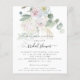 Boho Floral Eucalyptus Bröllopsdusch-inbjudan. Ett budgetvänligt MINDRE 4,5” x 5,6” alternativ. Finns i en SEMI-GLANSIG 110 lb KORTSTOCK eller en SATINFINISHAD 80 lb TUNNARE PAPPERSTOCK. Kuvert är ett tillval. Moderna bohemiska stilar med blommor och bladverk i salvia grönt och rosa från toppen med toning som gradvis hamnar delvis bakom texten. Bröllopsdusch är i en handskriven stilsnift. Anpassa enkelt texten till dina egna detaljer.