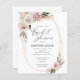 Denna elegant budget för boho rosa blommigt inbjudningskort för möhippan är perfekter för en möhippa i elegant vår eller sommarträdgård. Utformningen har vackra vattenfärgsvita och blommigtar för rosa med pampasgräs, torkat handflatan och eukalyptus greenery. Gör inbjudan till dig själv genom att inkludera din namn och all information om party.