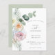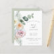 Budget Boho Eucalyptus Blommigt Bröllop Spara Date. Ett budgetvänligt SMALLER-alternativ på 4,5 x 5,6 tum. Finns på ett SEMI GLOSS 110 lb-kort LAGRAR eller ett SATIN AVSLUTAR 80 lb TINNER PAPPRA LAGRAR. Kuvert är ett valfritt extra. Moderna pasteller bohemian stil, med blad och blommor i nyp och sage-grönt som löper längs den lämnat sidan och typografi till högerna. En samordnande grönt är på baksidan. Anpassa texten till dina egna detaljer.