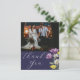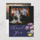 Modern minimalistisk tackkort. Med stor kalligrafi och visuella vilda blommor i elegant, vit och gult i lila. Den här mallen är avsedd för 2 liggande foton. Enkel och roligt att anpassa för att skapa dina egna unika "Tack"-kort.