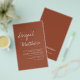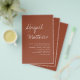 Budgetera Anpassa den här Boho Simple Elegant Terracotta Burnt Orange and White Snyggt-inbjudan med ditt meddelande och detaljer på baksidan. Denna minimalistiska inbjudan omfattar handskrivet manustypografi med snyggt med ett modernt färg för den speciella Bröllopsdagen firande.