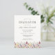 En vacker akvarell blomsterkant av vilda blommor pryder den nedre kanten på denna trendiga boho-examensfest inbjudan. Anpassa den kolgrå texten på en elfenbensvit bakgrund med examenkandidatens namn i handskriven skrift; skolan och examensår i sans serif; och datum, plats och RSVP-information i serif-teckensnitt. Baksidan av kortet är enfärgat elfenbensvit.