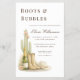 Celebrate your baby shower in an elegant boho western style with this chic “Boots & Bubbles” theme. Designed with a quiet luxury aesthetic, this gender neutral ranch-inspired invite features elegant typography paired with a soft watercolor illustration of cowboy boots, champagne bottle, cactus, and delicate florals .