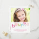 En modern inbjudan till barnkalas med färgrik studsande typografi och personlig ålder och foto. Klicka på redigeringsknappen för att anpassa denna design.