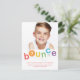 En modern inbjudan till barns födelsedag-partiet med färgstark studstypografi och personlig och bild. Klicka på knappen Redigera om du vill anpassa designen.