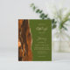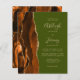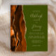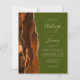 Den vänstra kanten på denna eleganta moderna bröllopsinbjudan har en bränd orange och brun akvarellagat-kant med falskt guldglitter. Den anpassningsbara texten kombinerar tan handstil, kopparplåt och kursiv stilar på en olivgrön bakgrund. Baksidan har en matchande agat-design.