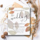 Vi presenterar vår enkla boho-design med delikat löv som är målat i bränd orange och blek grått, ett testamente till din speciella dags enkla men djupa elegans. Varje stroke fångar säsongens innersta väsen, förkroppsligar värme, respit och löftet om en ny resa. Anpassa enkelt och skapa din unika bröllopsinbjudan.