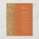 Den vänstra kanten på denna eleganta moderna bröllopsmeny har en falsk guldglitterkant. Den anpassningsbara texten kombinerar guldliknande fantasifull handskriven skrift och kopparplåtstypsnitt på en bränd orange bakgrund. Baksidan har en matchande bränd orange och guld glitterdesign.