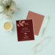 Den här enkla, men elegant bröllop-inbjudan till repetitionsmiddag har modern gieneri i terracotta. Använda fält för mallen för att uppdatera dina uppgifter vitt över en maronbakgrund. Byt färg i löven och bakgrunden för att passa ditt bröllop-tema. Kortet återgår till en komplementär färg. Om du vill se hela bröllop-papperskorgen går du till www.zazzle.com/dotellabelle