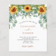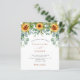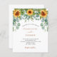 En vit bakgrund som dekorerats med solblommor, eukalyptus greenergiy. Anpassa och lägg till information om namn och party.
