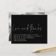 Budget Manus Förälskad Tack Foto Bröllop Tack Svart. Kärlek och tack är i en handskriven stil med detaljerna nedanför. Massor av vitt utrymme högst upp för en modern touch! Anpassa enkelt resten av texten till dina egna detaljer och ersätt fotot på baksidan med ditt eget som automatiskt blir svartvitt. Om du vill ta bort svartvittfiltret klickar du på Anpassa ytterligare och väljer filteralternativet och väljer Inget filter.