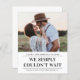 En tidssvar bröllopsannons med rubriken Vi kunde helt enkelt inte vänta. Ett bra sätt att låta nära och kära veta att ni har gift er. Baksidan tillåter ett personligt meddelande till vänner och familj eller kan tas bort om så önskas. Klicka på redigera för att anpassa.