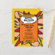 En rolig, cool och trendig serietidningsinspirerad bröllopsfestserie budgetinbjudan som sätter wham, zap, pow i vilken superhjältebrud som helst firande event. Baksidan har ett matchande serietidning prickmönster. Designad av Thisisnotme©
