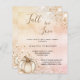 En modern, elegant bröllpsfest. En rosa guld och rosafärgad bakgrund dekorerad med falskt guld- och silverglitterstoft och en rustik vit pumpa. Anpassa och lägg till ett namn och festdetaljer. Svarta bokstäver. Med texten: Förälskad på hösten