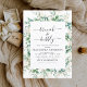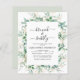 Budgeten Grey Botanical Eucalyptus Foliage Greenery Watercolor Vår bröllop Brunch och BubLY Champagne Inbjudningskort för möhippa mot vit bakgrund - innehåller modern vacker manustypografi och elegant med modernt botaniskt löv och grön för att speciella Briden ska vara firande.