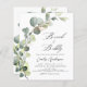 Brunch och BubLY Eucalyptus Greenery Succulent Botanical Watercolor Emerald Grönt Vår bröllop Inbjudningskort för möhippa på vit bakgrund - innehåller vacker och elegant manustypografi med modernt botaniskt löv och grön för att speciella Bride ska vara firande.