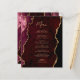 Denna eleganta moderna bröllopsmeny har en burgunderröd akvarell-agat-kant med falskt guldglitter. Den anpassningsbara texten kombinerar guldfärgad handskriven skrift och kopparplåtstypsnitt. Baksidan har en matchande burgunder och guld-agat-design.