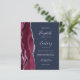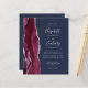 Den vänstra kanten på denna eleganta moderna bröllopsinbjudan har en burgunderfärgad akvarell-agat-kant med silverfärgad falsk glitter. Den anpassningsbara texten kombinerar silvergrå handskrift, kopparstick och kursiva teckensnitt på en marinblå bakgrund. Lägg till ytterligare detaljer på baksidan, tillsammans med en QR-kod för att hjälpa dina gäster att besöka din bröllopswebbplats.