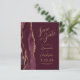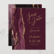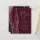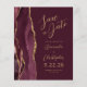 Den vänstra kanten på detta eleganta moderna bröllops korts förhandsavisering har en burgunderröd akvarellagat kant med falskt guld glitter. Den anpassningsbara texten kombinerar guldfärgad skrift och sans serif-teckensnitt på en burgunderbakgrund. Baksidan har en matchande burgunder och guld agat design.