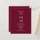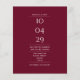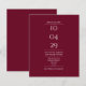 En modern minimalistisk budget bröllopsinbjudan design med ditt speciella datum och bröllopsdetaljer i klassisk, chic typografi på en burgunderbakgrund. Designad av Thisisnotme
