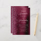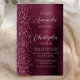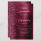 Den lämnat kant i eleganten är en modern bröllopsinbjudan med en burgundisk faux glitter gräns. Anpassadet kombinerar vit handskrift och sans serif typsnitt på en burgundisk faux borstad metall bakgrund. Baksidan har en passande burgundisk glitter och borstad metall-design.