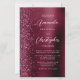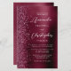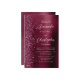 Den lämnat kant i eleganten är en modern bröllopsinbjudan med en burgundisk faux glitter gräns. Anpassadet kombinerar vit handskrift och sans serif typsnitt på en burgundisk faux borstad metall bakgrund. På baksidan finns det utrymme för bröllop-information på en burgundisk metall-bakgrund med borstad, tillsammans med en QR-kodgäst som kan söka igenom webbplatsen och OSAN, vilket sparar kostnaderna för utskrift och utskick av separat OSA kort.