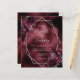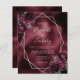 Den här elegantens moderna bröllopsinbjudan innehåller en silver-geometrisk ram som dekoreras med blommor från burgundy och silver på en mörk-burgundy-bild av bakgrunden. Anpassadet kombinerar silver grått med fysisk handskrift, tryckplåt och kursivt typsnitt. Baksidan har samma burgunda faux-folie.