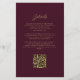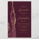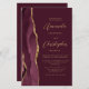 Den här elegantens lämnat kant har en modern bröllopsinbjudan med en burgundröd vattenfärgad agat gräns som trimmas med faux guld glitter. Anpassadet kombinerar skript av guld-färgad och sans serif typsnitt på en burgundisk bakgrund. På baksidan finns utrymme för bröllop-information på en solid burgundär bakgrund, tillsammans med en QR-kodgäst som kan söka igenom webbplatsen och OSAN, vilket sparar kostnaderna för utskrift och utskick av separat OSA kort.