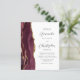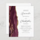 Den här elegantens lämnat kant har en modern bröllopsinbjudan med en burgundröd vattenfärgad agat gräns som trimmas med faux guld glitter. Anpassadet kombinerar grått-skriptet för kol och sans serif typsnitt på vit bakgrund. Den omvända sidan ger plats för bröllop-information på en solid vit bakgrund, tillsammans med en QR-kodgäst som kan söka på webbplatsen och OSAN, vilket sparar kostnaderna för utskrift och utskick av separat OSA kort.