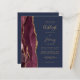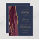 Spara kostnaden för att skriva ut och skicka separata RSVP-kort med denna eleganta moderna allt-i-ett budgetbröllopsinbjudan. Den vänstra kanten har en burgunderfärgad akvatint kant trimmat med guldglitter. Den anpassningsbara texten kombinerar guldfärgad handskrift, kopparstick- och kursiv stilar på en marinblå bakgrund. Baksidan ger utrymme för detaljer om bröllopet på en enfärgat marinblå bakgrund, tillsammans med en QR-kod som gästerna kan skanna för att besöka er webbplats och svara.