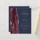 Spara kostnaden för att skriva ut och skicka separata RSVP-kort med denna eleganta moderna allt-i-ett budgetbröllopsinbjudan. Den vänstra kanten har en burgunderfärgad akvatint agat-kant med guldglitter. Den anpassningsbara texten kombinerar guldfärgad handskrift, koppartryck och kursiv stilar på en marinblå bakgrund. Baksidan ger utrymme för detaljer om bröllopet på en enfärgat marinblå bakgrund, tillsammans med en QR-kod som gästerna kan skanna för att besöka er webbplats och svara. OBS: Kuvert ingår inte automatiskt i dessa budgetinbjudningar, så glöm inte att välja alternativet "tomma vita kuvert"!
