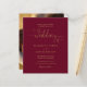 Denna eleganta budgetbröllopsinbjudan kan anpassas med dina festdetaljer i chic guldtypografi på en burgunderröd och guld bakgrund med ditt valda foto på baksidan. Designad av Thisisnotme