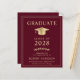 Elegant och budgetvänlig, ingen fotoburgundröd klassisk studenten-kungörelse med ett tak för guld grad och modern ljustypografi för guld för student namn, klassår, skola, högskola eller universiteten, examen och större eller högre.