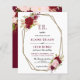 Budgeterad Elegant Monogram Burgundy Guld bröllopsinbjudan till Blommigt levereras med enkel monogramfront med Marsala burgundy geometric guld ram med snyggt text och burgundisk blommigt tillbaka.