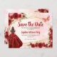 Modern Burgundy Maroon Red Guld Glitter Gnistra Blommigt Ro Butterfly Princess Quinceañera Birthday Spara datum meddelande