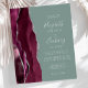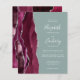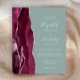 Den här elegantens lämnat kant har en modern bröllopsinbjudan med en burgundisk vattenfärgad agat gräns som trimmas med silver faux glitter. Anpassadet kombinerar vit handskrift, tryckplåt och kursivt typsnitt mot bakgrund av grönten. Den bakomliggande sidan har en matchande burgundi och silver-agate-design.