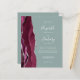 Den här elegantens lämnat kant har en modern bröllopsinbjudan med en burgundisk vattenfärgad agat gräns som trimmas med silver faux glitter. Anpassadet kombinerar vit handskrift, tryckplåt och kursivt typsnitt mot bakgrund av grönten. Lägg till ytterligare information på baksidan tillsammans med en QR-kod som hjälper dina gäster att besöka webbplatsen för bröllop.