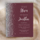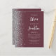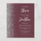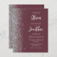 Den lämnat kant i eleganten är en modern bröllopsinbjudan från silver i glitter gräns. Anpassadet kombinerar skriptet blek grått och sans serif typsnitt på en mörk burgundröd bakgrund. Baksidan har en matchande burgundi- och silver-design.