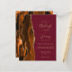 Den lämnat kant i eleganten i den moderna bröllopsinbjudan innehåller en bränd vattenfärgad orange i gräns som trimmas med faux guld glitter. Anpassadet kombinerar handskrift, rityta och kursivt typsnitt med guld färgad i en burgundisk bakgrund. Den omvända sidan har en matchande bränd orange och guld agate-design. Kombinationen perfekt färg för ett fallbröllop!