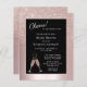 På en luxerbakgrund med metallfolie i rosa har Inbjudningskort för möhippan i vår budget för elegant en glitter-formgivning med bubblande champagneglas som sörjer för det explosiva brödet. I ett svart ram hittar du exempeltext som du enkelt kan revidera med egna detaljer med hjälp av anpassningsmallen. Baksidan av inbjudan visningar den unika symbolen glitter utan text.