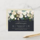 Elegant blomstergestaltad bröllopsfestinbjudan med krämfärgade elfenbensfärgade akvarellrosor och frodig grönska med guldglittrande accenter mot en mörk marinblå bakgrund. Som en del av budgeturvalet här på Zazzle kommer dessa inbjudningar inte med kuvert och passar inte heller tätt i ett standardstort kuvert. Den närmaste storleken är A6, men det kommer att finnas ett mellanrum på ungefär en halv tum. Om du inte har något emot att det inte passar tätt kan du använda sådana lättillgängliga A6-kuvert. Annars kan denna design överföras till ett standardformat 5x7 (som kommer med kuvert) med hjälp av designöverföringsverktyget. Som en grov guide, vid tidpunkten för skrivandet, skulle 100 budgetinbjudningar (inklusive volymrabatt) kosta runt $39
